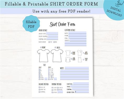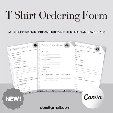 T-shirt Order Form Template: Canva & Fillable PDF, Custom Apparel -