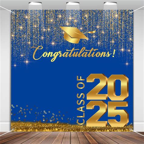 Tineit Class Of 2025 Backdrop, 6 6 ft Graduation Photo Backdrop, Blue And Gold Graduation Banner, 2025 Congratulations Banner For Photoshoot,