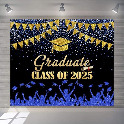 Hraiufc Graduation Class Of 2025 Backdrop 10x8ft Vinyl Graduate Ceremony Blue Black Gold Glitter Photography Photoshoot Background 2025 Graduation