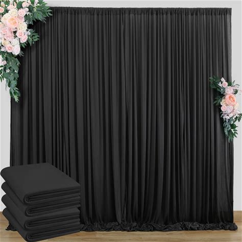 Black Backdrop Curtain For Parties, 10 Panels Wrinkle Free Polyester Photo Backdrop Drapes For Weddings Birthday Anniversary Graduation Stage