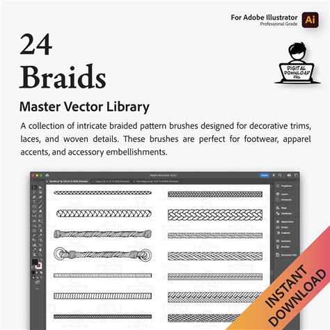 Adobe Illustrator Vector Brushes 24 Braids For Technical Design Professional Grade Tech Pack Hardware