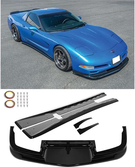 Replacement For 1997-2004 Chevrolet Corvette C5 All Models | ZR1 Extended Style Front Bumper Vented Lip Splitter & Side Skirts Rocker Panel Extension
