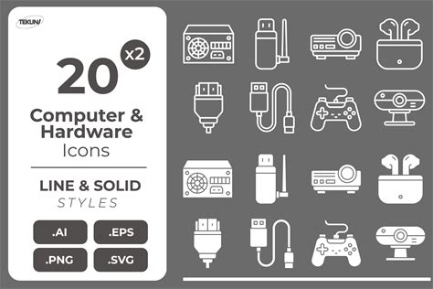 Computer & Hardware Icons SVG, Tech Device Clipart, Gamer Icons, UI Icon Pack