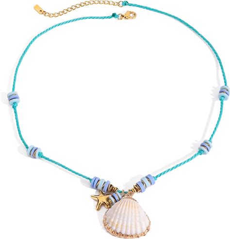 Inmorump Handmade Wave String Shell Necklace Braid Conch Starfish Charm Necklace Boho Cute Trendy Summer Colorful Necklaces Bracelets Beach Jewelry