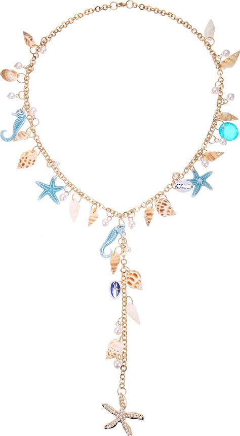 RUOFFETA Shell Starfish Necklace, Conch Statement Chunky Y Necklace Mermaid Costume Jewelry Beach Jewelry For Women
