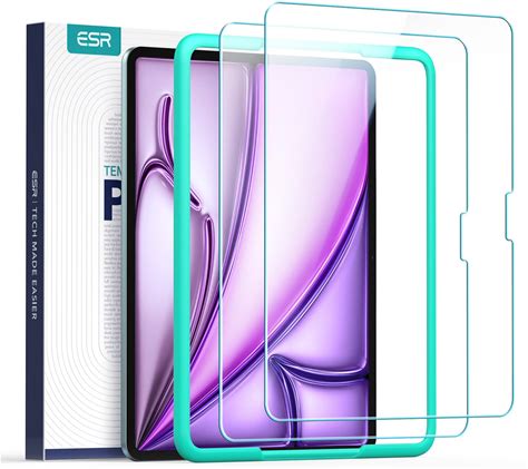 ESR 2 Pack Screen Protector For iPad Air 13 Inch M3/M2 (7Th/6Th Generation, 2025/2024), Ultra-Hard Tempered Glass Film Guard With Alignment Frame,