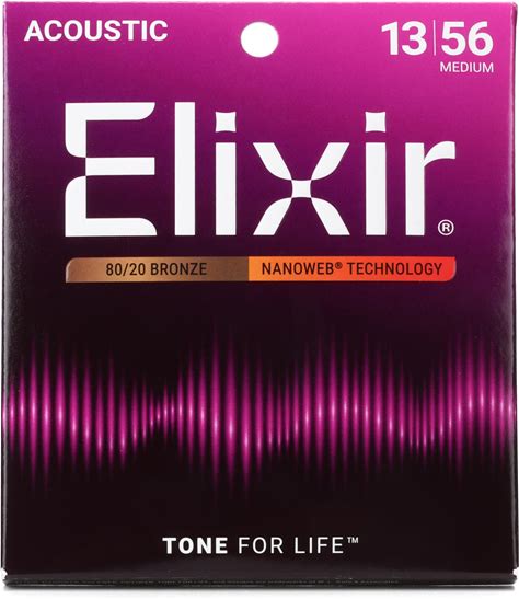 Elixir Strings, Acoustic Guitar Strings, 80/20 Bronze With NANOWEB Coating, Longest-Lasting Bright And Focused Tone With Comfortable Feel, 6 String
