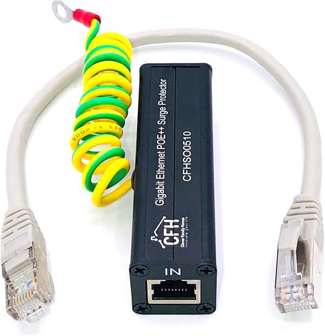 Ethernet Gigabit Surge Protector Kit With CAT 6A Jumper Cable And Ground Wire (Supports POE++, POE+, POE, Non-POE)