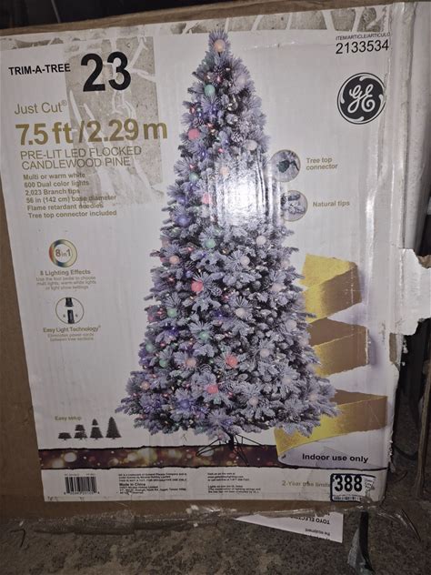 Title GE 7.5ft Pre-Lit Snowy Christmas Tree Dual Color Lights & 8 Effects. GE. Multicolor. Christmas Trees.