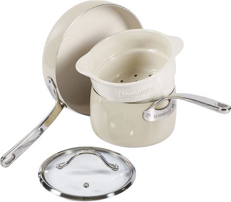 Bloomhouse 4-Piece Aluminum Cookware Set W/ Non-Stick Non-Toxic Ceramic Interior And Ceramic Steamer Insert - White
