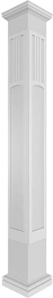 7-5/8 in. X 9 ft. Premium Square Non-Tapered Art Deco Fretwork PVC Column Wrap Kit W/Mission Capital And Base