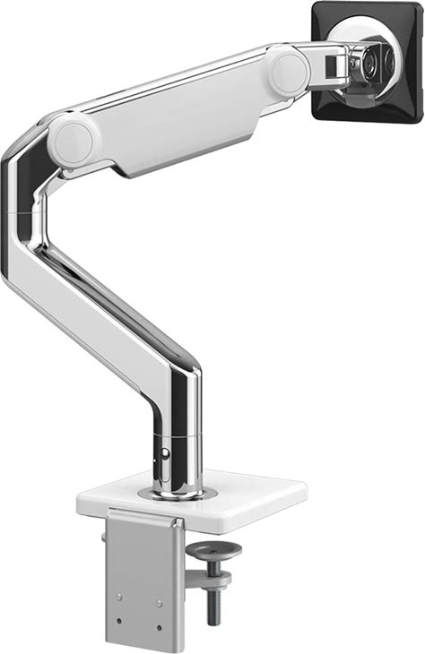Humanscale M8.1 Monitor Arm | 2 Piece Clamp Mount Base | Angled Link/Dynamic Link | Standard Monitor Tilt | Standard Black Vesa Bracket 100mm X 100mm (Polished Aluminum With White Trim)