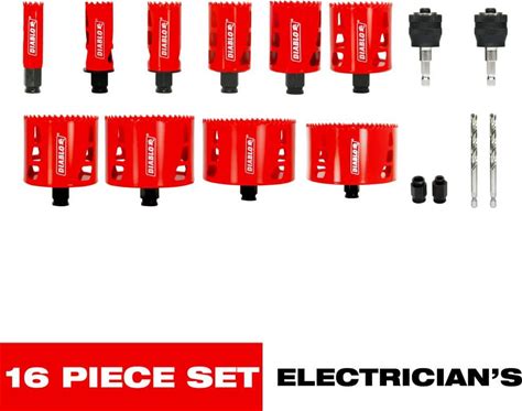Diablo Hole Saw Set: 14 Pieces, 2 3/8 in Max. Cutting Dp, Bi-Metal, 2 9/16 in Max Saw Dia Included Model: DHS14SGP