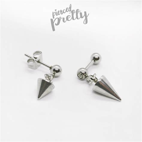 20G, 16G Kpop Style Cone Dangle Tragus Labret Earring, 316L Surgical Steel, Men Cartilage Earring Tragus Helix / Labret Bar(Optional), 1Pc