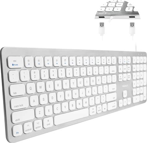 Macally Wireless Bluetooth Keyboard For Mac - Compatible Apple Keyboard Or Macbook Pro/Air, iMac - Multi-Device, Up To 3 Devices With 110 Keys, 20 Shortcuts, Numeric Keypad, And Rechargeable - Silver