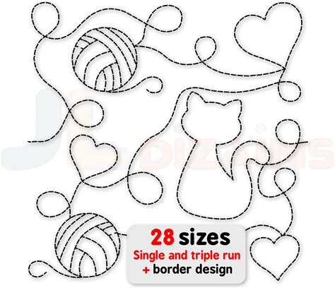Cat Quilting Embroidery Design. Edge To Edge Machine Embroidery Design With Cat, Hearts And Yarn. Border Design Also Included. 28 Sizes.