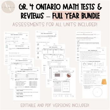 Grade 4 FULL YEAR Of Math Unit Tests & Review BUNDLE | Ontario Curriculum