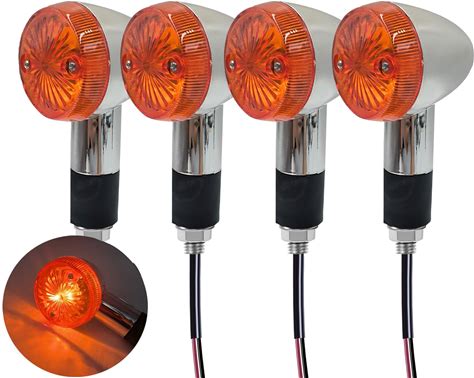 VRWEARE 4PCS Motorcycle Turn Signals Chrome Bullet Front Rear Amber Blinker Lights Indicator Compatible With Honda Harley Kawasaki Suzuki Yamaha ATV