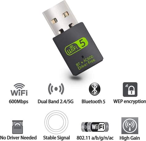 TB USB Wifi Bluetooth Adapter Dongle 2 in 1, 600Mbps Dual Band 2.4/5Ghz Wireless Network External Receiver For Windows 7/8 /8.1/10 & 11