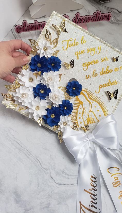 Graduation Custom Virgencita Grad Cap Class Of 2026 Paper Flowers Custom Hat Senior Graduate Cap High School