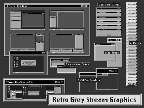 Retro Streaming Graphics / ANIMATED Scenes / Grey / Twitch Overlay Package / Vapor-Wave Aesthetic / Panels And Banner