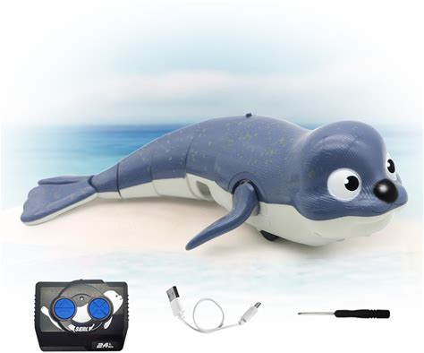 QUN XING Amphibious Remote Control Seal - 2.4Ghz Rechargeable Pool & Land Toy For Kids Ages 3-12, Waterproof Swimming & Crawling Robot With USB-C
