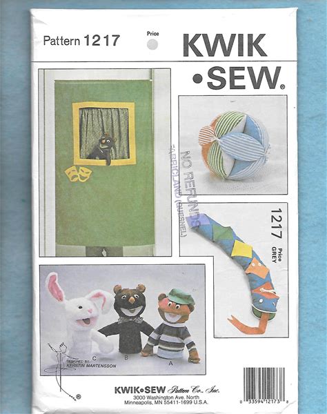Kwik Sew 1217 Sewing Pattern Learning Toy Puppets Puppet Curtain Pretend Play Baby Ball Learning Toy Snake
