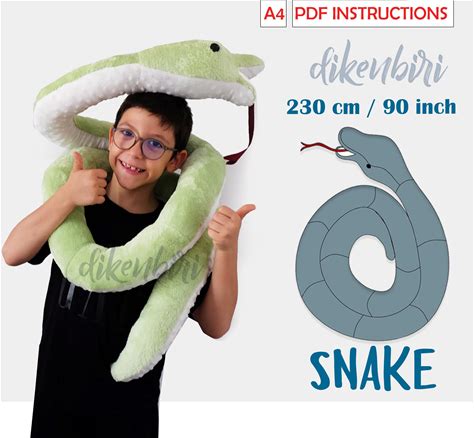 PDF 90 Inc Snake Sewing Pattern- Stuffed Animal Gift- Printable 230 cm Snake Toy