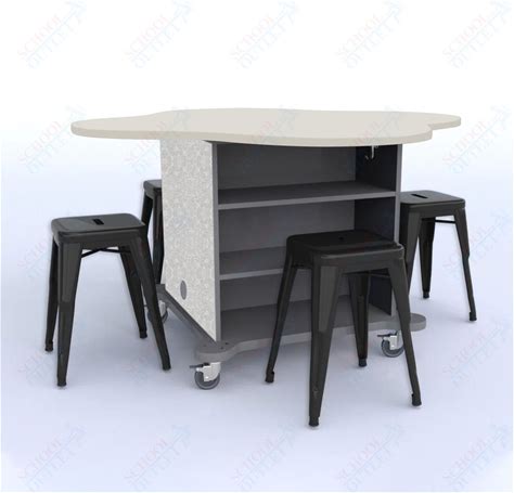 CEF Creation Cube Double-Sided Storage Table - 30"H, High-Pressure Laminate Base And Clover Top - 4 Metal Stools Included, Folkstone Hex / Grey / Black