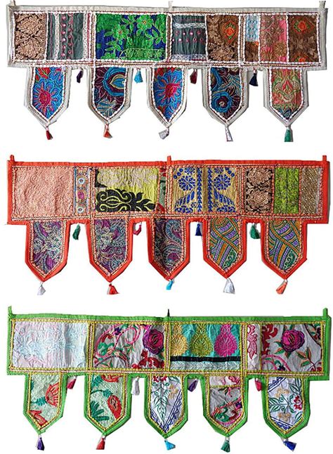 ICC Valances For Windows Toran Cotton Vintage Patchwork Door Hanging Valance Window Hand Embroidered Bohemian Decor Living Room Wall Bedroom Living