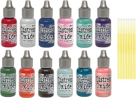 Ranger Distress Oxide Bundles - 12 Water-Reactive Distress Oxide Ink Colors 0.5 Fl Oz Bottles - With Trebbies Detail Sticks (Set 6-12 Coordinating