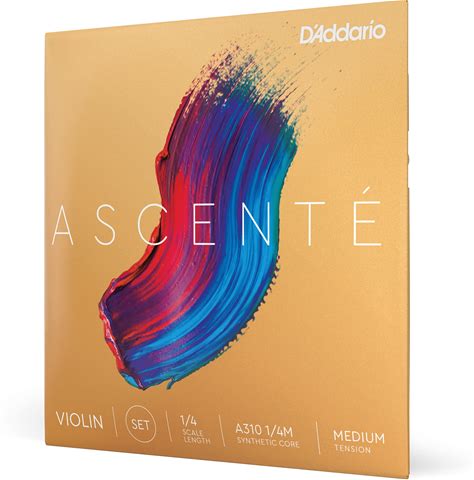 D'addario Ascente Violin Strings - Violin Strings With Ball Ends, Synthetic Core - A310 1/4m - Full Set - 1/4 Scale - Medium Tension