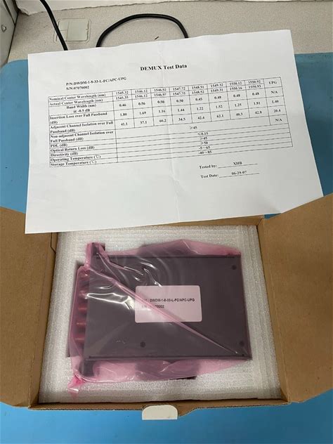 Unbranded 8 CH DWDM Demux W/ Full Test Data Sheet NEW