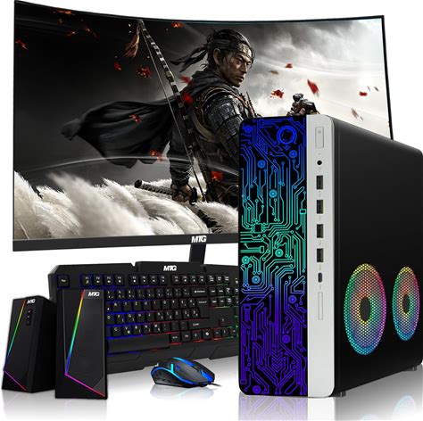 HP G4 Desktop Computer PC AMD Pro A10-9700 R7, 8GB RAM, 1TB SSD, 27-Inch Curved Monitor, RGB Speaker, RGB Keyboard With AI-Enabled Copilot Key, Mouse,