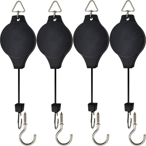 NSBELL 4PCS Plant Pulley With 4 PCS Metal Ceiling Plant Hooks Retractable Pulley Plant Hanger Hanging Flower Basket Hook Hanger For Garden Baskets