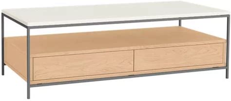 Room & Board | Modern Williams Coffee Table Black | White Quartz Top | Oak W/ Salt Stain Wood | 48W 24D 16H