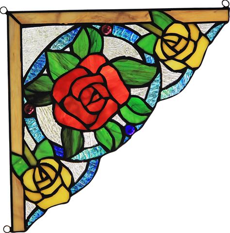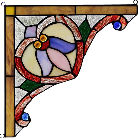 Set Of 2 Victorian Tiffany Style Stained Glass Corner Window Panel 8" Home Decor. Chloe Lighting. Multicolor. Suncatchers & Mobiles.