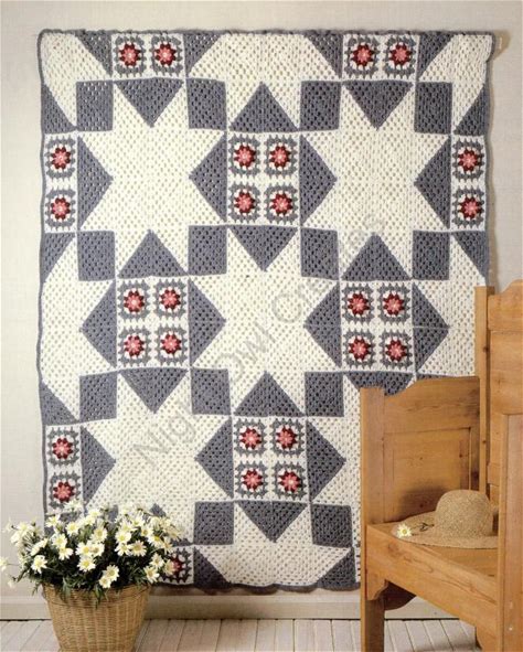 Vintage Crochet Quilt Pattern Patchwork Star Afghan Blanket Throw INSTANT Digital DOWNLOAD Now!