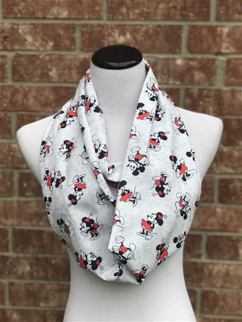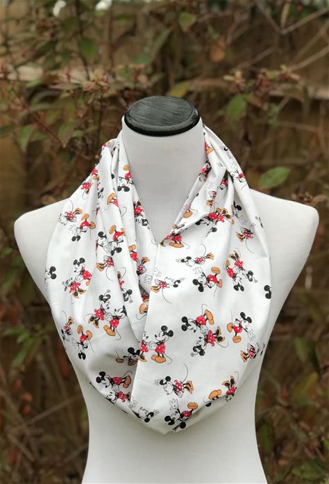 Mickey Scarf Mouse Scarf Cotton Infinity Scarf For Mickey Minnie Lovers Scarf White Gray Red White Scarf Loop Scarf