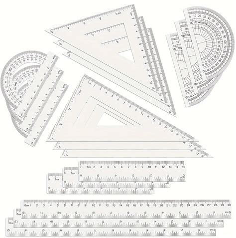Tdfronien 2 Packs 12 Inch Plastic Ruler And 6 Inch Plastic Protractor Set Clear Math Geometry Set Classroom Set Angle Detector School Supplies