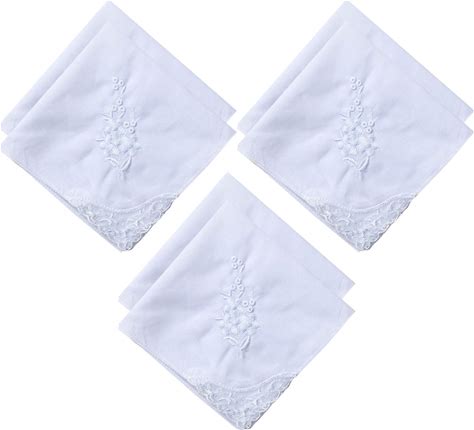 6 Pack Of Ladies Embroidery Cotton Handkerchiefs Lace Wedding Hankies