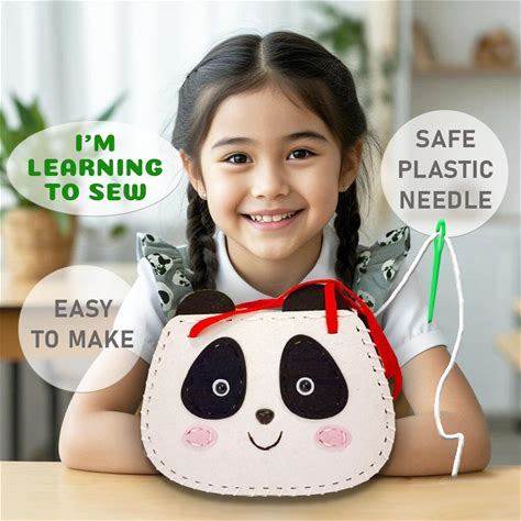 Panda Felt Bag Craft Kit For Kids - Montessori Sewing Activity For Beginners