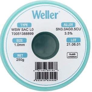 T0051388899 Weller SN3 1.0 mm 250 G Spool SAC-L0 Wire Solder New