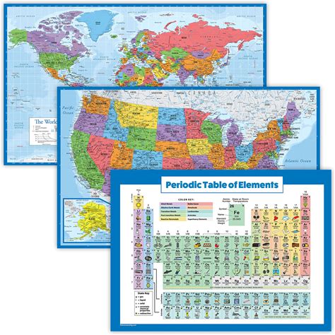 World Map, United States Map, And Solar System Poster With Extra Features - Laminated 14X19.5 in - Educational Posters, Classroom Decorations,