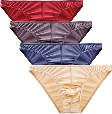 Wierside Men's Silky Satin Stretch Support Briefs Thong G-String Bikini Sexy Underwear For Men 4 Pcs/Pack