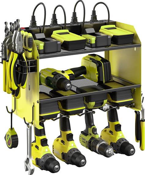 Power Tool Organizer With Charging Station, Heavy Duty Modular Wall Mount Rack For Garage & Shed Organization, 4 Drill Holders, Fathers Day