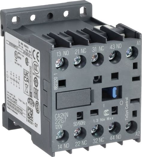 Schneider IEC Control Relay: DIN-Rail & Surface Relay Mounting, 120V AC Coil Volt, 2NO/2NC, 10 A Model: CA2KN22G7