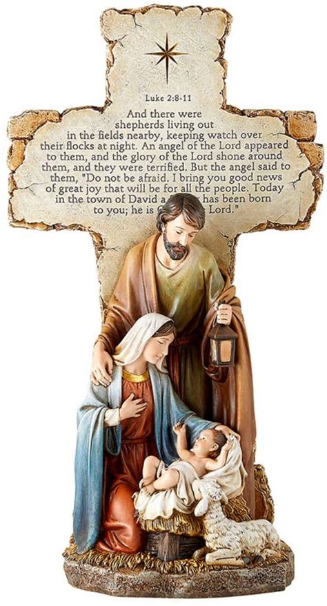Needzo Holy Family Standing Cross Christmas Statue With Luke 2:8-11 Bible Verse, Nativity Scene Decor For Indoor, Christmas Decorations For Home, 14