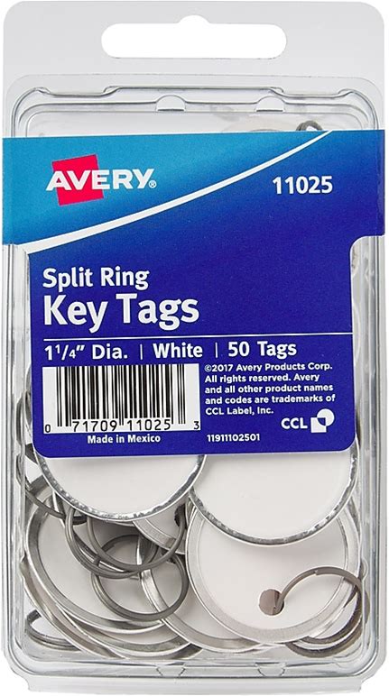 Avery Metal Rim Key Tags 6-Pack, 1.25" Diameter Tag, Metal Split Ring, White, 300 Tags Total (13128)