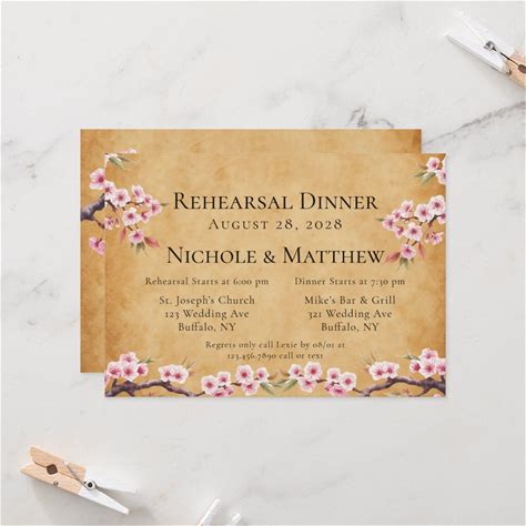 Japanese Scroll Cherry Blossoms Rehearsal Dinner Invitation